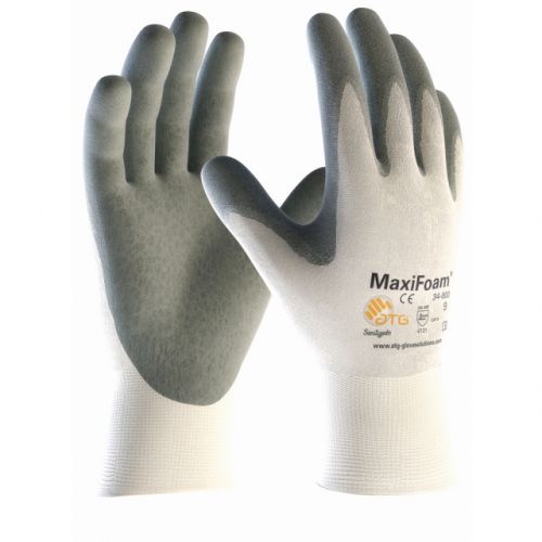 nahtlos gestrickte Nylon-Handschuhe mit Nitrilschaum-Beschichtung, handflächenbeschichtet, vorgewaschen, waschbar bis 40°C, silikonfrei lt. Angaben des Herstellers