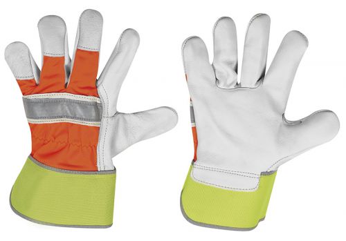 TOP-Rindnarbenlederhandschuh (HiVi) / natur / mit Neonhandrücken / CE CAT 2 / Größe 10